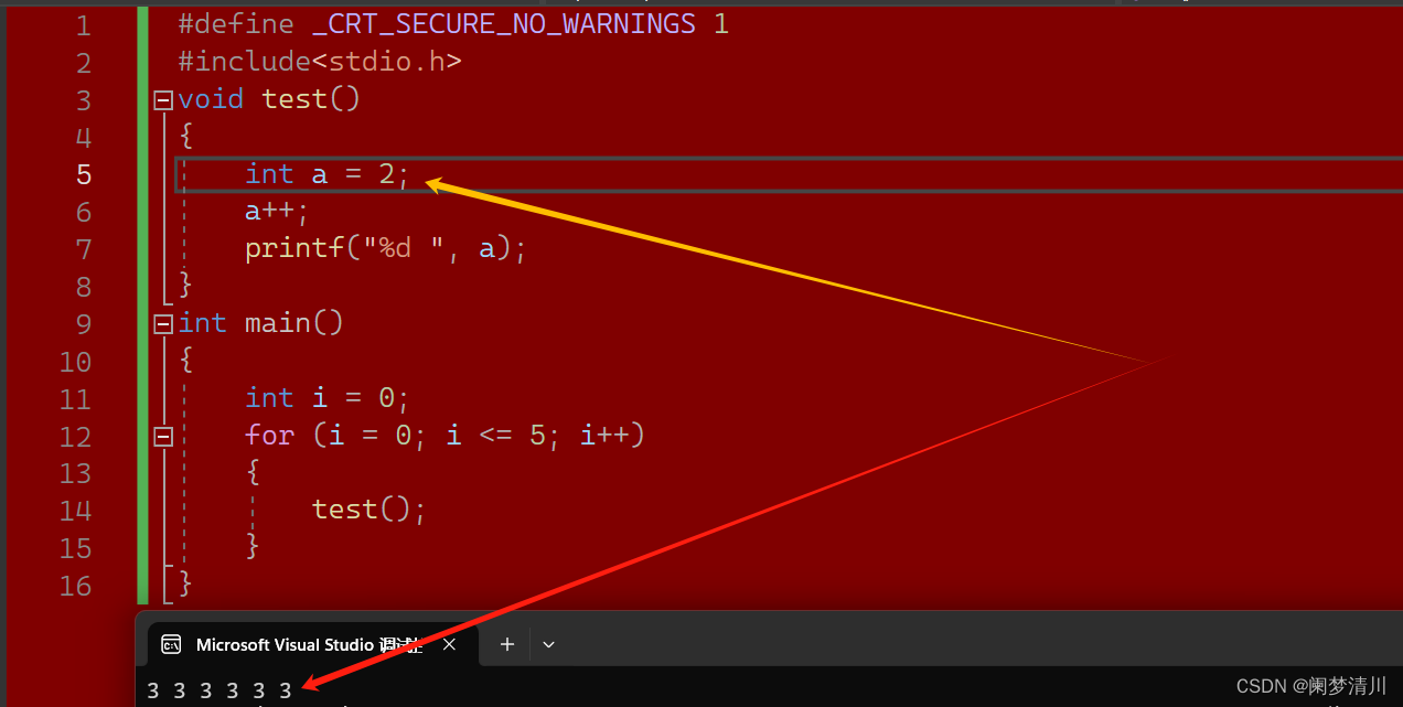 static修饰局部变量改变了变量的⽣命周期,⽣命周期改变的本质是改变了变量的存储类型,本