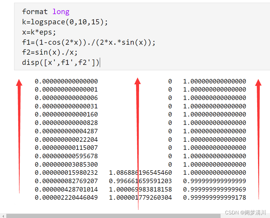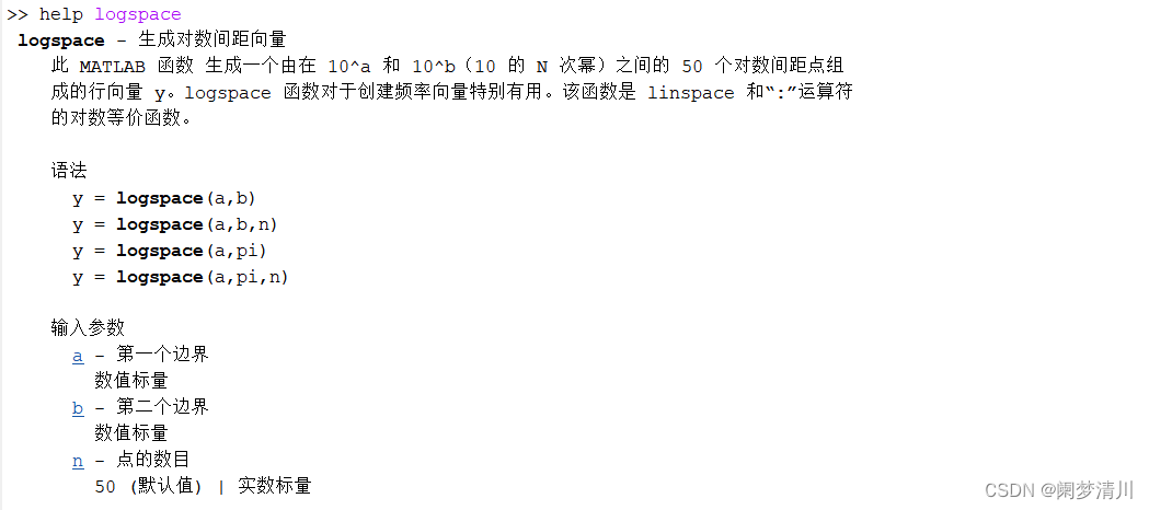 (1)这个文档或许可以让你对于这个函数的用法有些了解,但是我们需要知道的是,他生成的是以10为底数的很大的数值,我们给他乘上eps就可以生成15个不断趋近于0的数字,这样就表示了这个极限的趋近过程