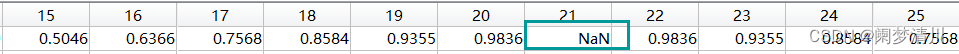 我们打开工作区页面,就会发现在选取的点里面,只有21个是NaN这个就是因为0/0才导致的;