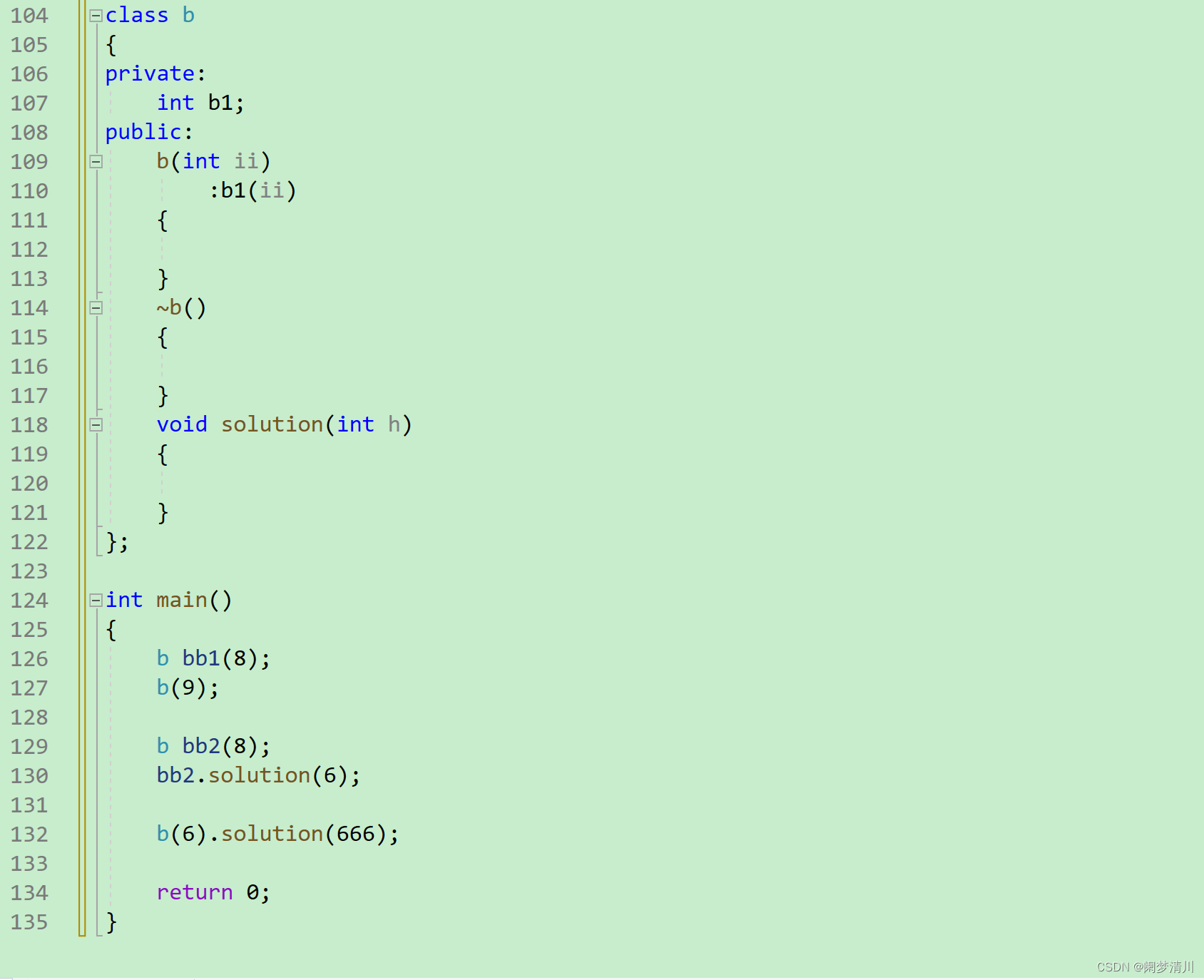(5)匿名函数可以不创建对象就可以调用这个函数,如132行里面,b(6)实际上就是默认的构造函数,他在这里就相当于是一个匿名对象(因为我们可以发现匿名对象在创建的时候,和有参数的构造函数的写法是一样的),因此我们的132行相当于是创建匿名对象去调用这个solution函数,我们以后见到理解即可。