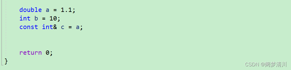 具体原理如下(这个后面的类和对象的隐式类型转换用的也是这个原理):就是我们的a实际上是创建了一个临时变量接受这个a的值,然后再把这个临时变量拷贝给我们这里写的变量c,因为我们的临时变量具有常属性,如果我们的c前面没有const进行修饰,就会报错;