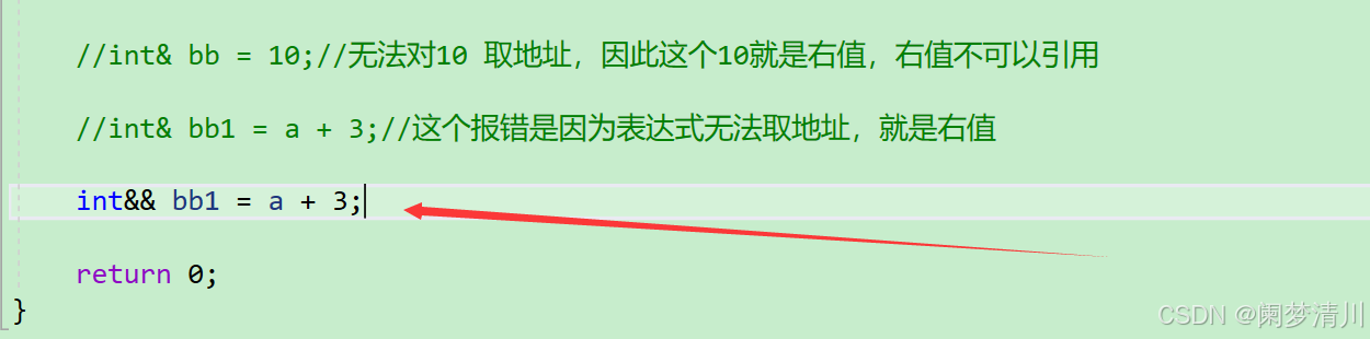 就是原来不可以引用的右值,我们可以通过添加两个&&进行右值引用吗,这个也是一个语法规则,大致了解即可,后面我们会遇到这个右值引用的具体示例;