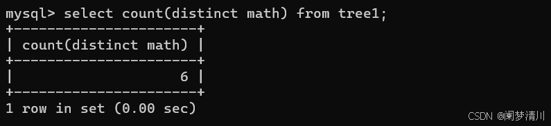 当然,在上面的这个基础之上,我们也可以添加上前面的这个约束,例如下面的这个就是使用的distinct约束之后对于这个数学这一列进行统计的,这个时候分数相同的情况下就不会重复统计了;