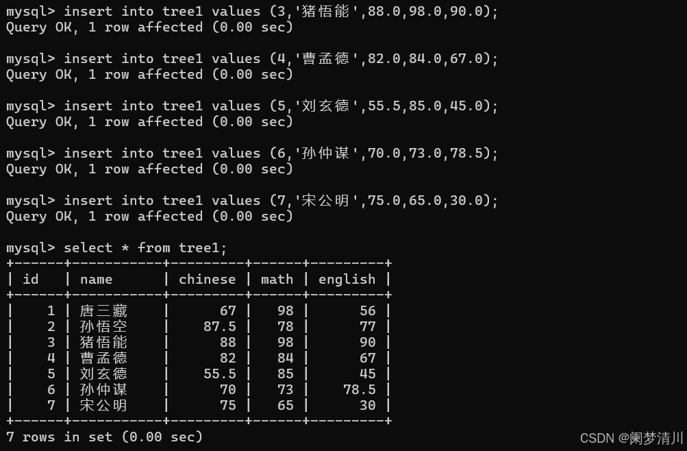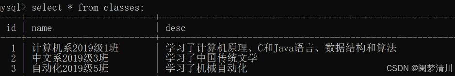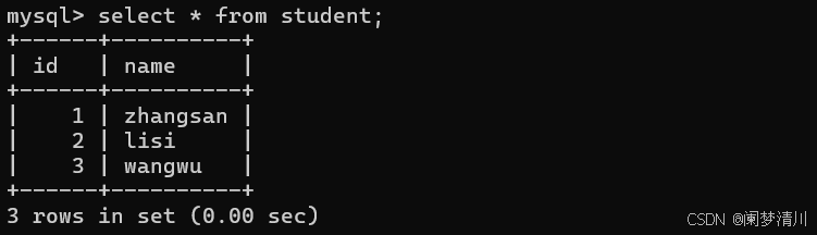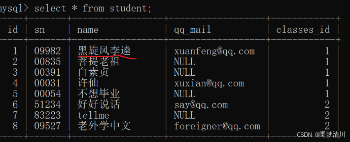 我们查询这个student这个表里面插入的内容: