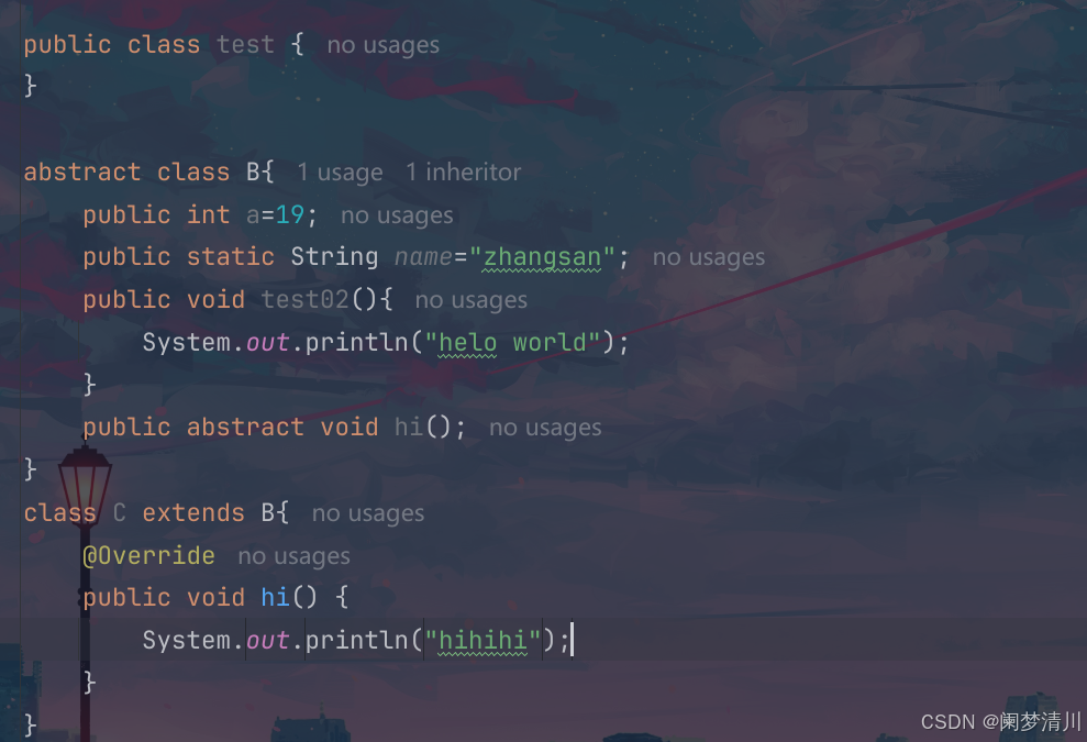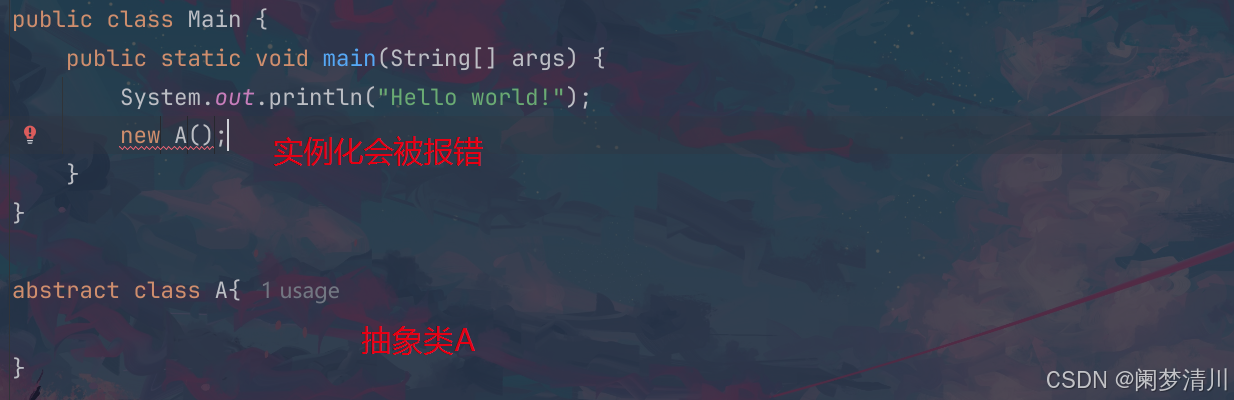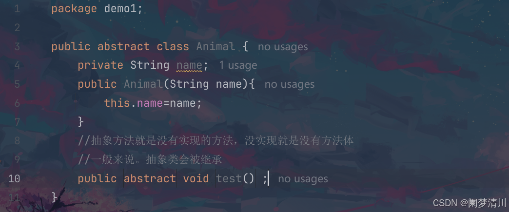 9)继承抽象类的子类需要对于我们的这个父类里面的抽象方法进行重写,否则会报错,除非我们的这个子类也是抽象类;