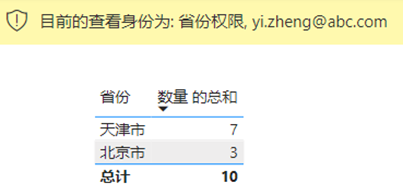 以用户yi.zheng@abc.com登录,报告中返回他负责的两个省份的数据: