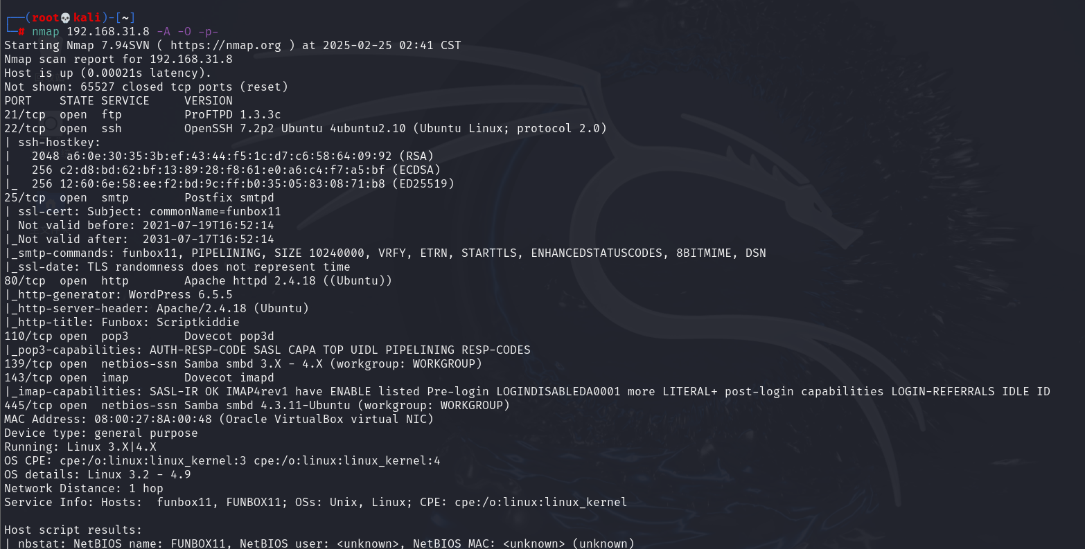 nmap 192.168.31.8 -A -O -p 1-65535