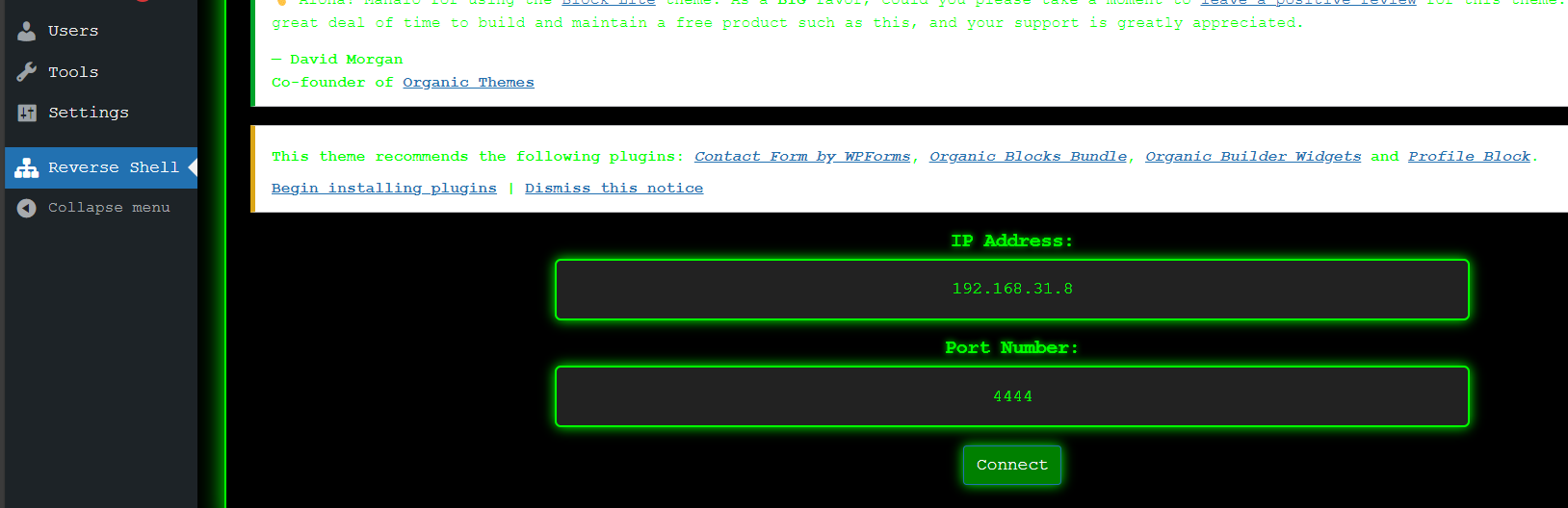 这里我把wp的密码改成123456登上去安装了个shell的插件。之前有说过。