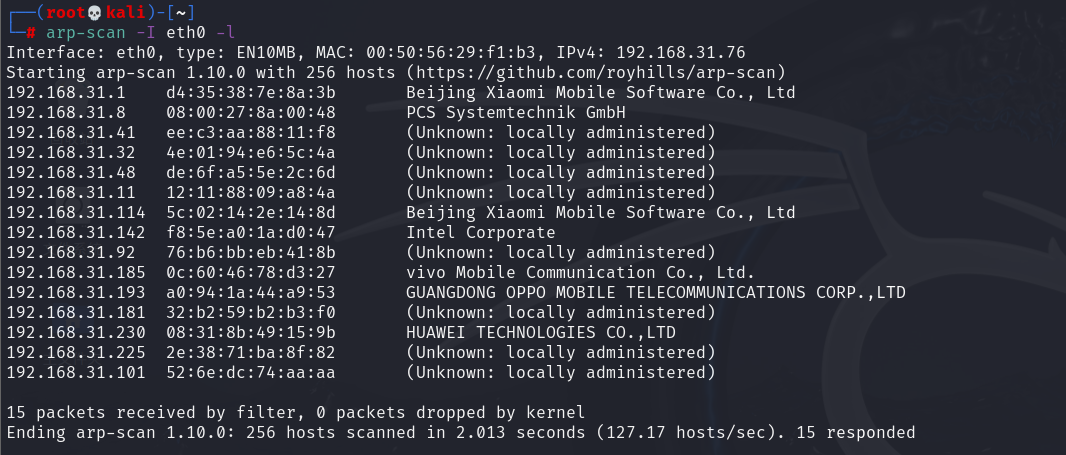arp-scan -I eth1 -l