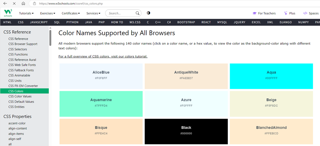 颜色文本可以使用名称或代码,常用的名称和代码如下,也可以访问w3schools网站查看更多的140种颜色。使用其他软件比如PPT中的滴管工具自行获取颜色代码也可以。