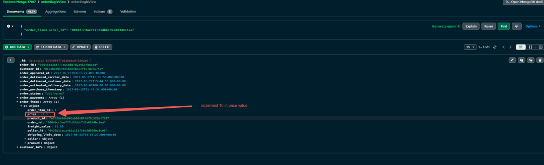 - 验证 MongoDB 宽表集合中 order_items 数组的更新情况