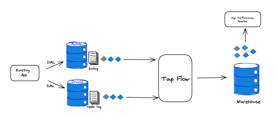 TapFlow是一个编程框架,目前还处于 Preview 状态。它允许您执行实时数据复制、数据处理以及创建物化视图等操作。它由一组API、Python SDK以及Tap CLI(一个命令行实用程序)组成。和常见的实时数据管道或者集成方案(如Kafka ETL)相比,使用Tap Flow 的优势是: