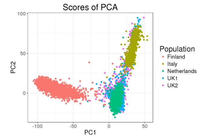 PCA是一种降维技术,用于可视化基因型数据的群体结构。它通过线性变换,将高维的基因型数据(例如SNP位点)投影到低维空间(通常是2D或3D),以揭示样本间的遗传变异模式。
