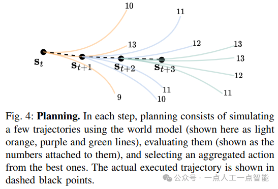 · 模型预测控制(MPC):基于AWMs自回归生成多条虚拟轨迹,通过奖励模型评估后选择最优动作序列(见图4)。相较于传统MPC,本文方法利用仿真器梯度信息显著减少计算开销。