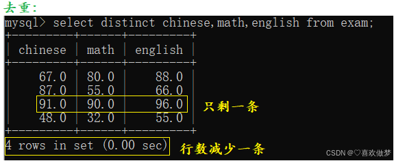 因为如果要去重的话,对重复行的要求是,你指定列上的元素要全部相同。