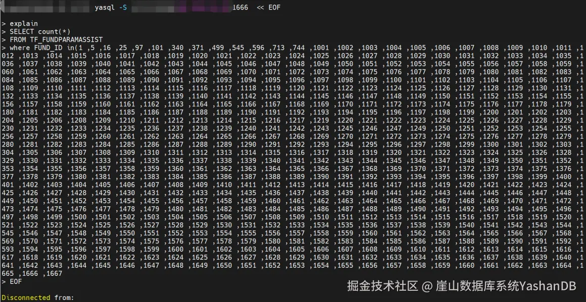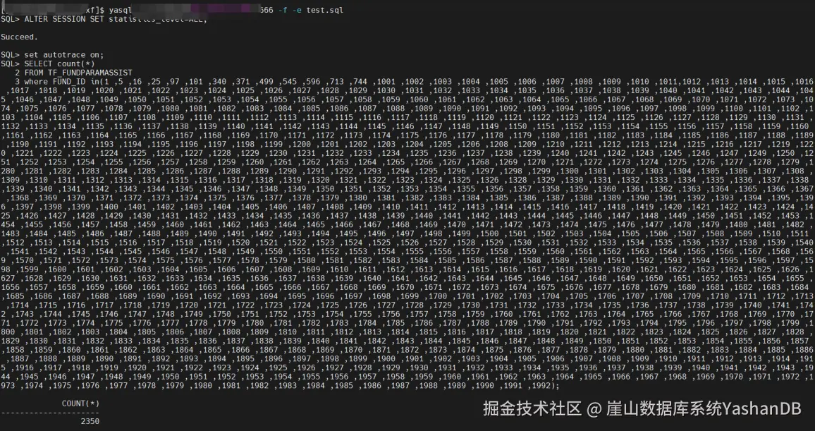 当遇到需要在yasql下执行,但SQL语句太长,超出交互模式单行字符上限制,可用使用非交互模式。