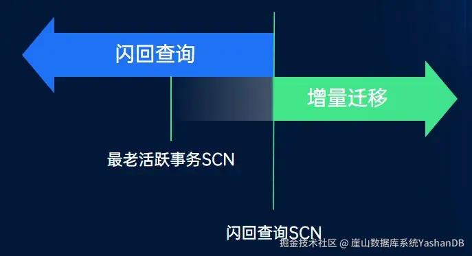 迁移组件基于闪回查询实现全量迁移至增量迁移的无缝衔接。具体实施细节如下: