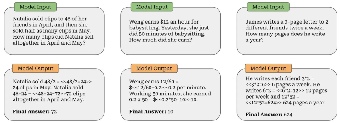在进一步了解推理模型的工作原理之前,让我们更深入地了解它们的性能。要真正了解这些模型的能力,我们需要做的不仅仅是查看指标 —— 我们需要检查这些模型正在解决的问题的具体示例。例如,考虑 GSM8K(如下所示),这是一个小学水平的数学基准。这些问题可能看起来微不足道,但 LLM 们多年来一直在努力准确地解决这个基准。