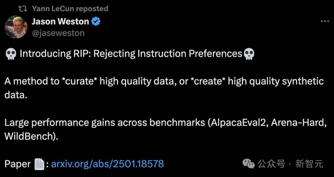 受到进化算法的启发,RIP在Alpacaeval2、Arena-Hard、Wildbench等多个有影响力的基准上实现了大幅提升,获得了LeCun的转赞。