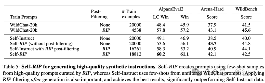 这些新生成的提示词可以进一步通过RIP进行筛选,以确保合成数据的质量,这种方法被称为Self-RIP。