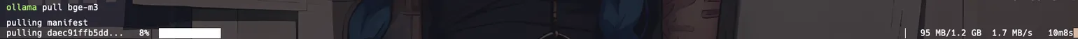 本地安装 ollama 并下载需要的模型。 官网下载ollama 下载 并安装后,打开任意终端, 如图输入以下两个命令来下载并运行 deepseek-r1 和 beg-m3,基础模型为deepseek-r1:7b, 嵌入模型为bge-m3, 需要联网下载,时间会比较久, 耐心等待提示成功即可。