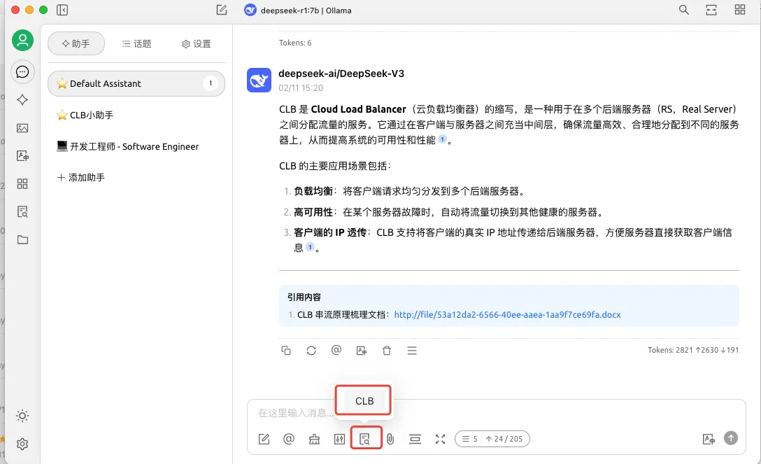 经过上面的步骤,我们的大模型和个人知识库其实已经搭建好了, 后续有新的素材可以重复步骤四补充进去,让知识库越来越丰富。接下来就是通过Cherry Studio 提供的聊天助手来更加方便的使用我们的知识库了。