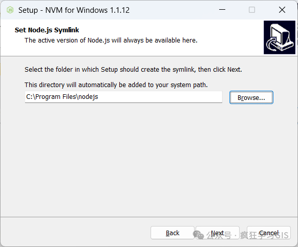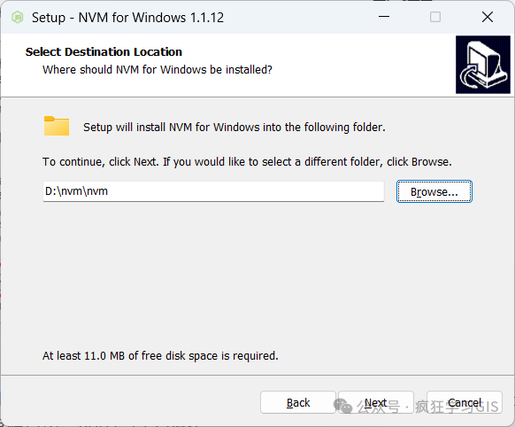 首先,在如下图所示的环节中,可以自行修改一下NVM的安装路径;这里要记住这个路径。