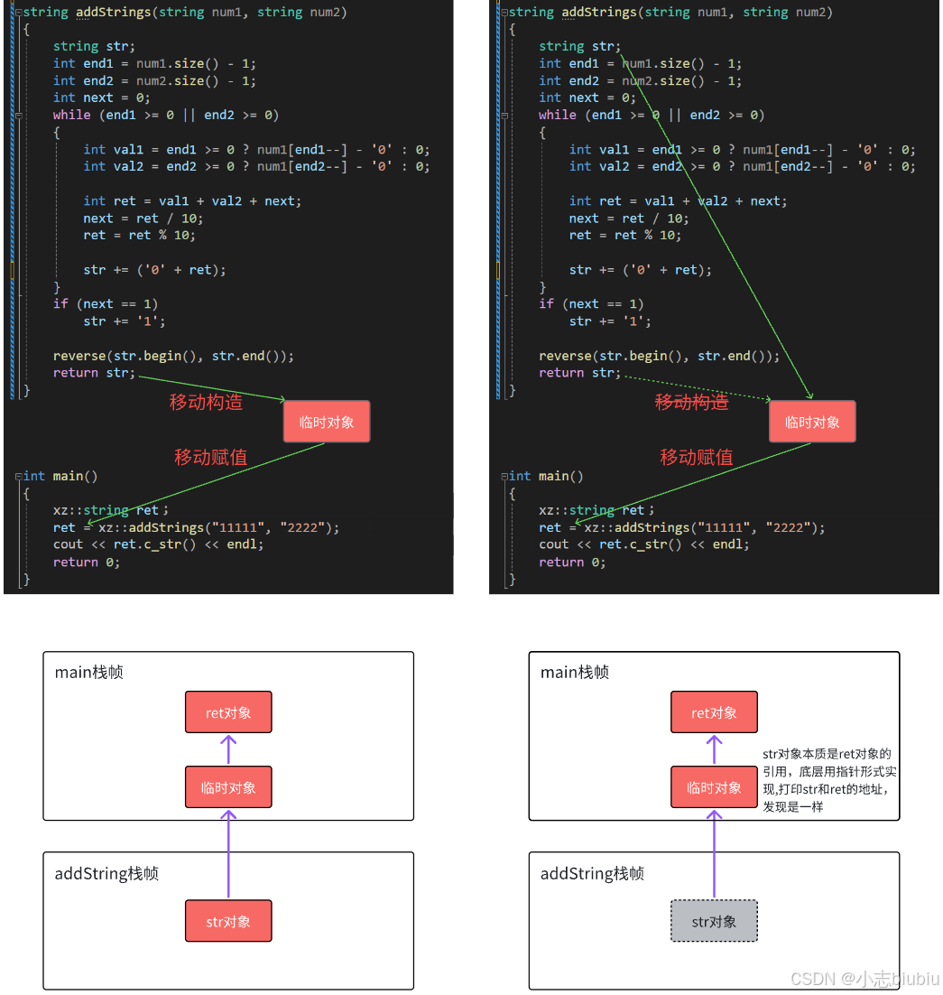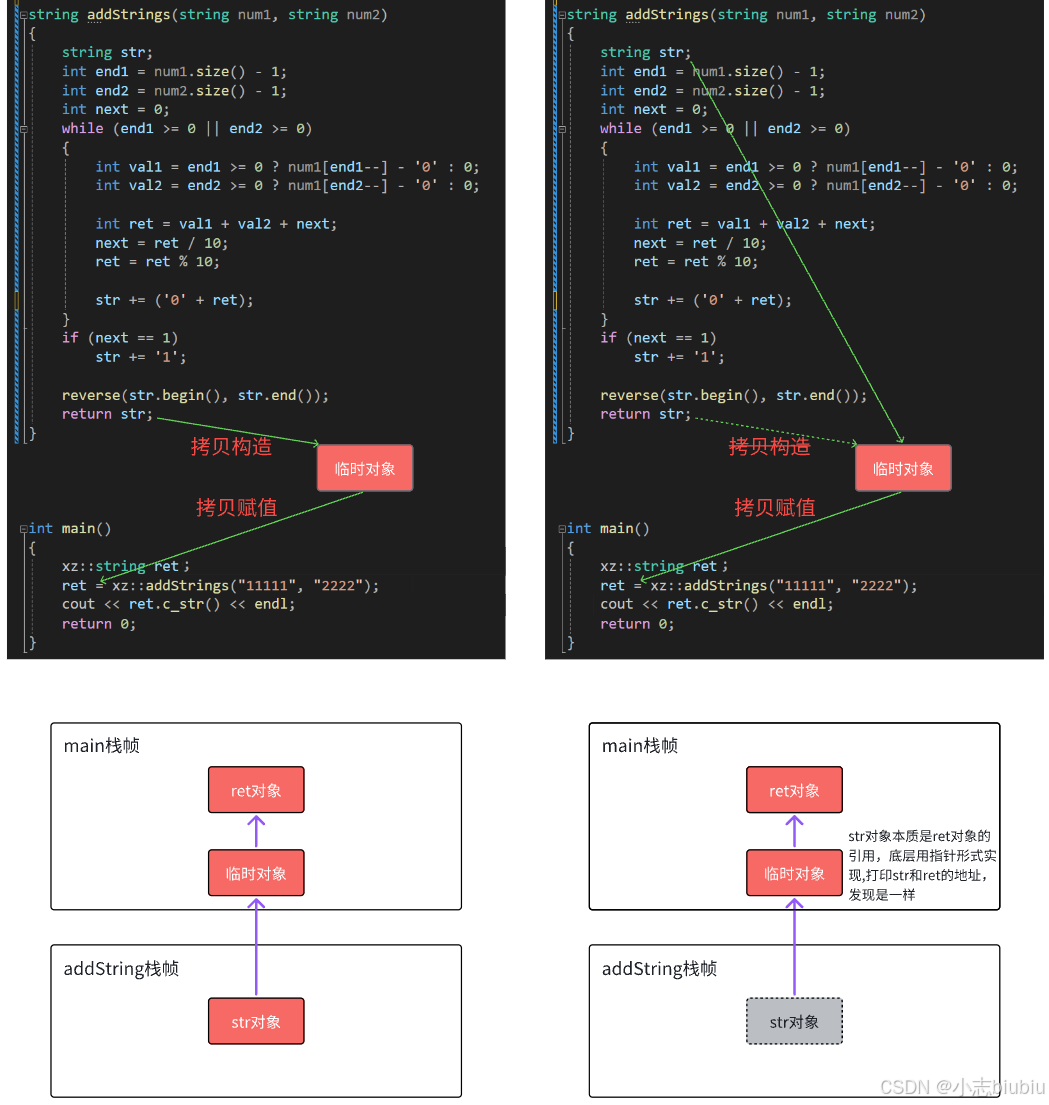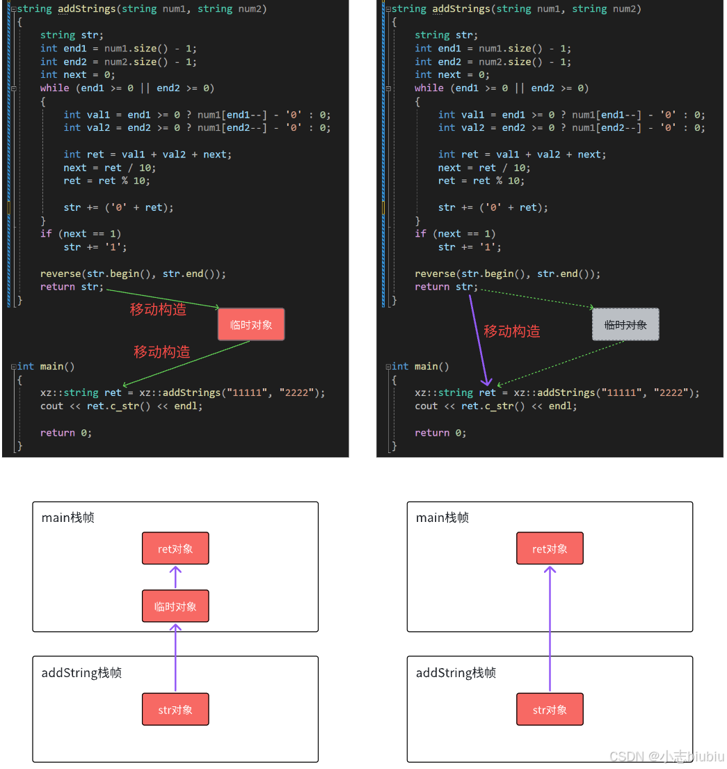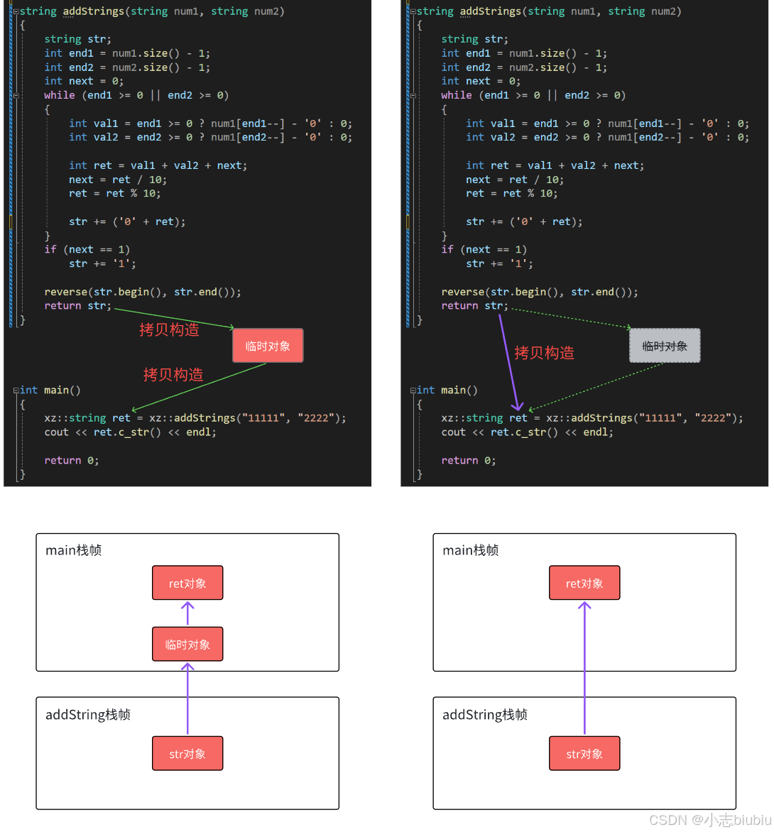 // 第⼆个v2是构造临时对象+临时对象拷⻉v2+优化为直接构造