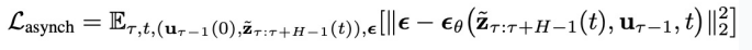 该方法考虑的也是H<N的情形。关键想法是:将扩散模型的模型时间窗口内的物理时间和扩散(去噪)过程解耦,越早的物理时间赋予越快的去噪进度,也就是越低的噪声程度。如此一来,既实现了不同物理时间步的并行采样,提高了采样效率;又能让更早采样到的控制信号所产生的环境反馈用于后续物理时间的控制信号采样,实现了闭环控制。