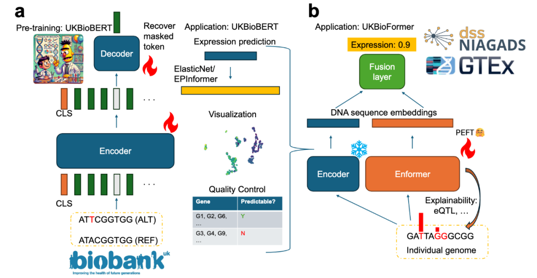 UKBioBERT及其衍生模型可根据个体遗传变异预测特异性基因表达水平,为靶向治疗方案的设计提供支持,帮助评估药物反应和疾病风险。