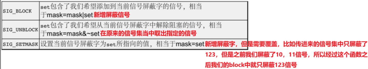 这个函数的作用是获取或者设置当前进程的block表。 第一个参数表示我们用这个函数干嘛,有以下三种选项: