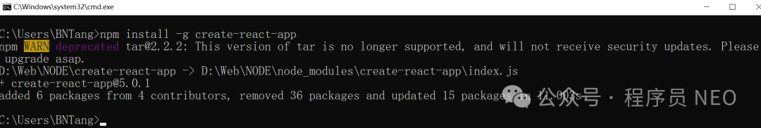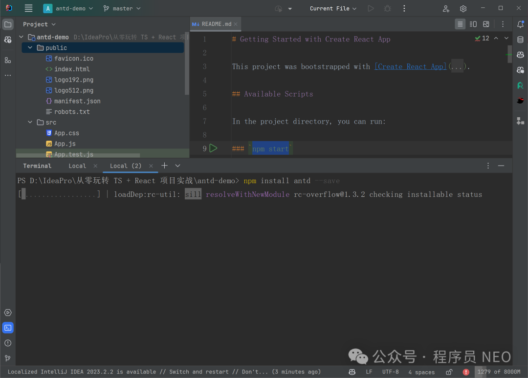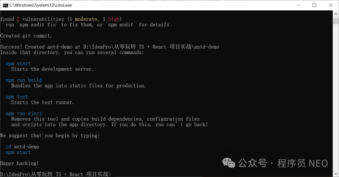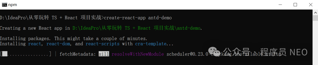 创建过程我这里也贴一下我正好也是在创建一个项目,我这里创建的项目名称是 antd-demo, 首先安装 create-react-app: