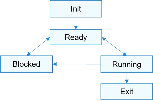 进程创建或fork时,拿到该进程控制块后进入Init状态,处于进程初始化阶段,当进程初始化完成将进程插入调度队列,此时进程进入就绪状态。