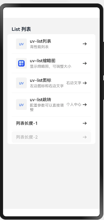 }UVListItem组件根据列表项的状态(如禁用状态)调整样式: