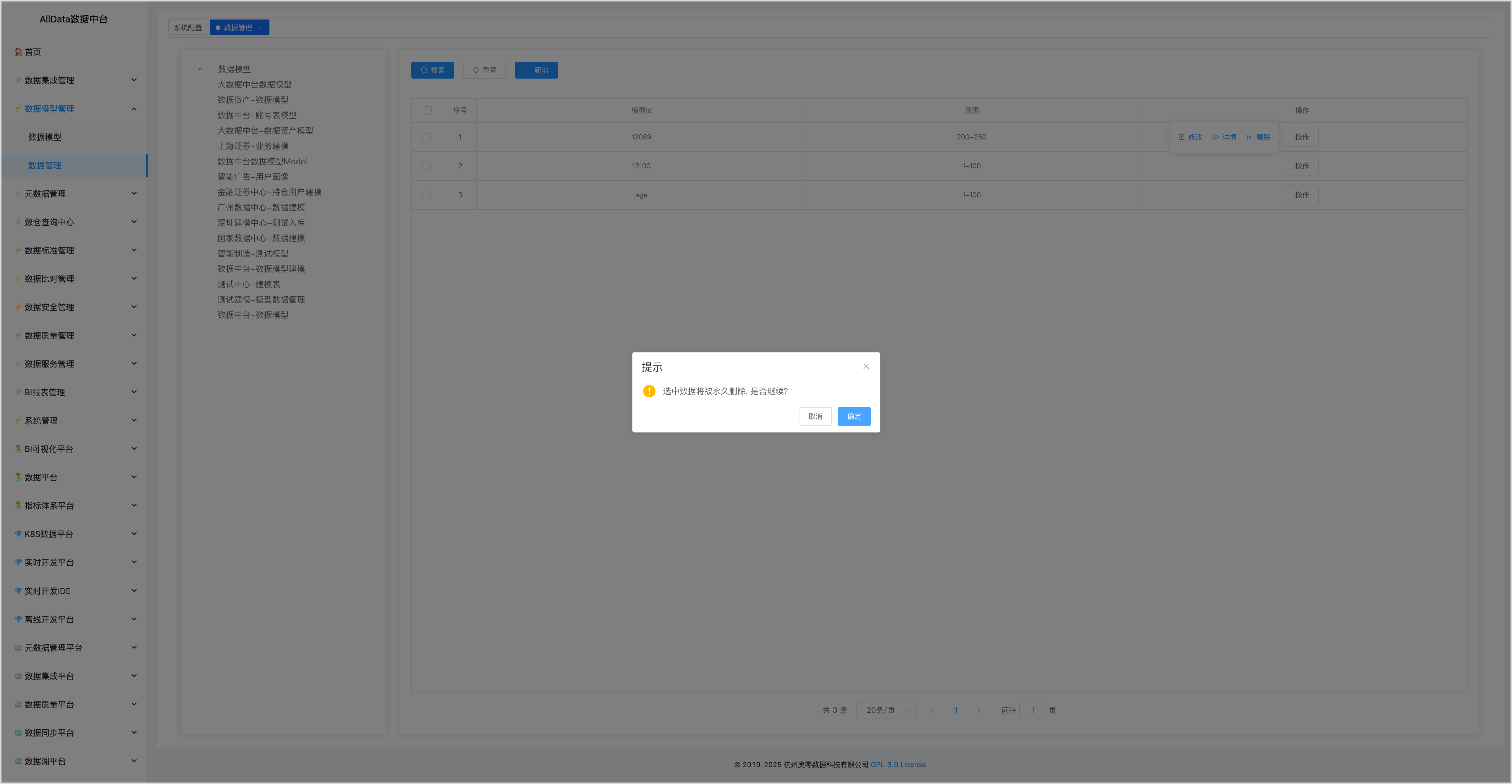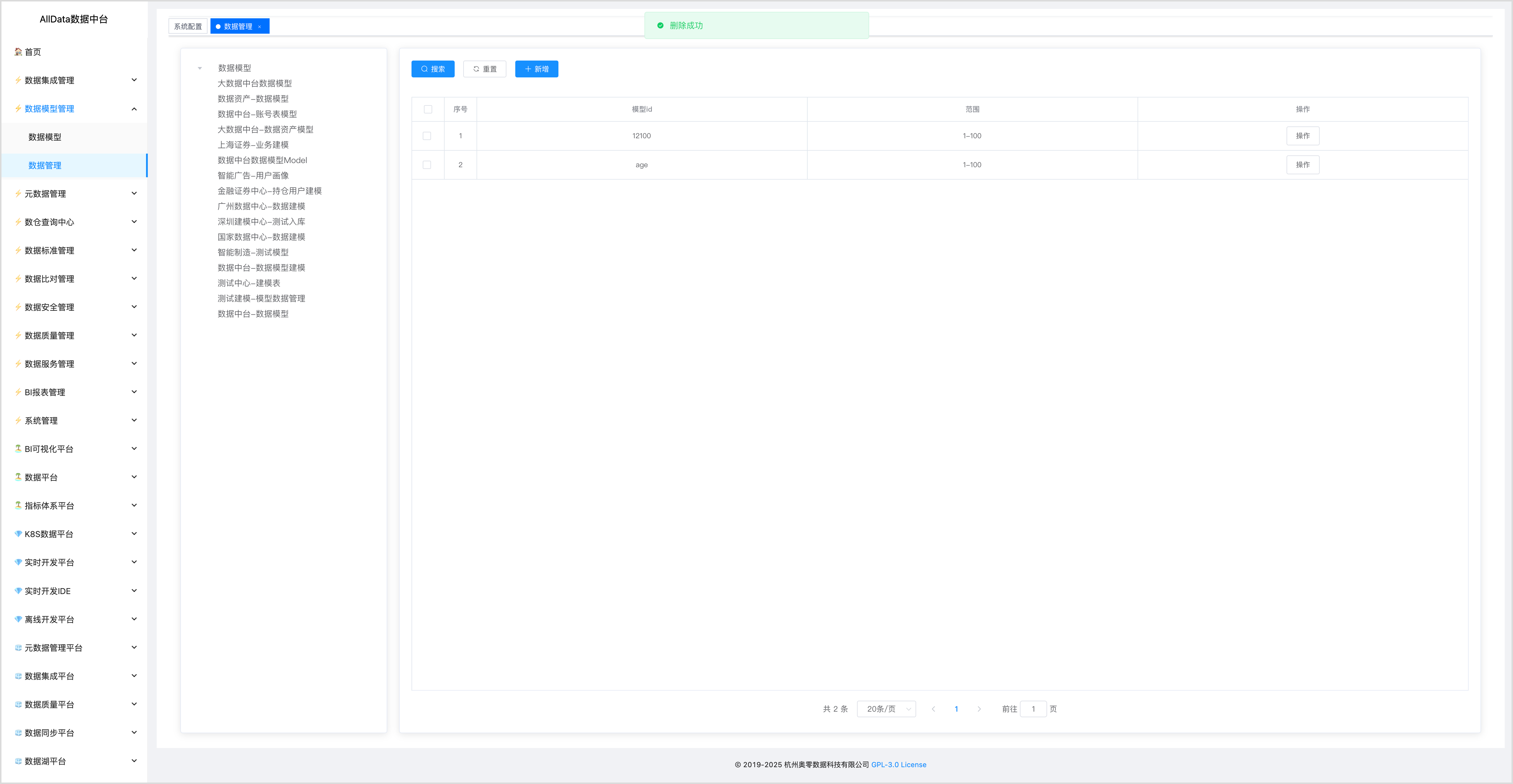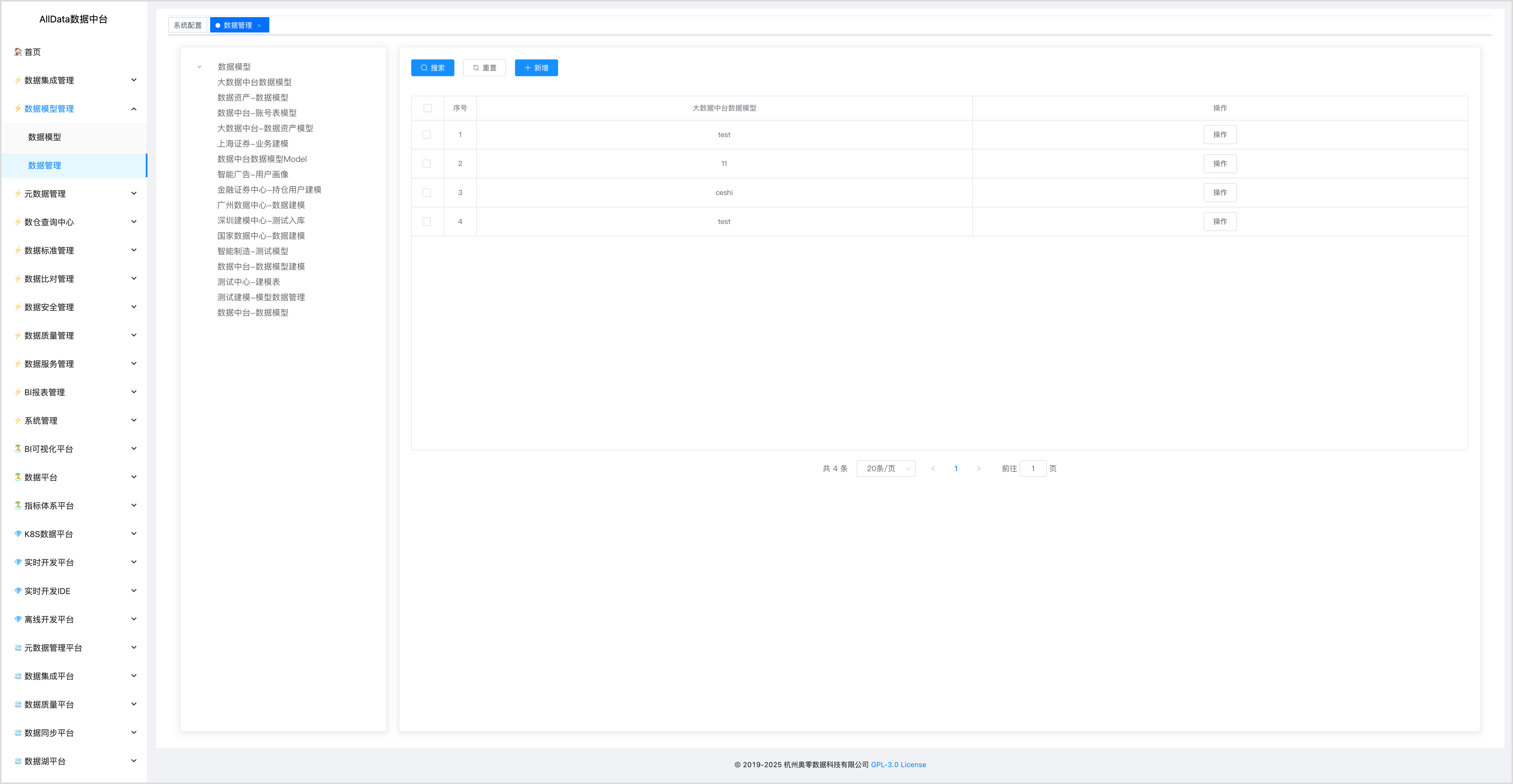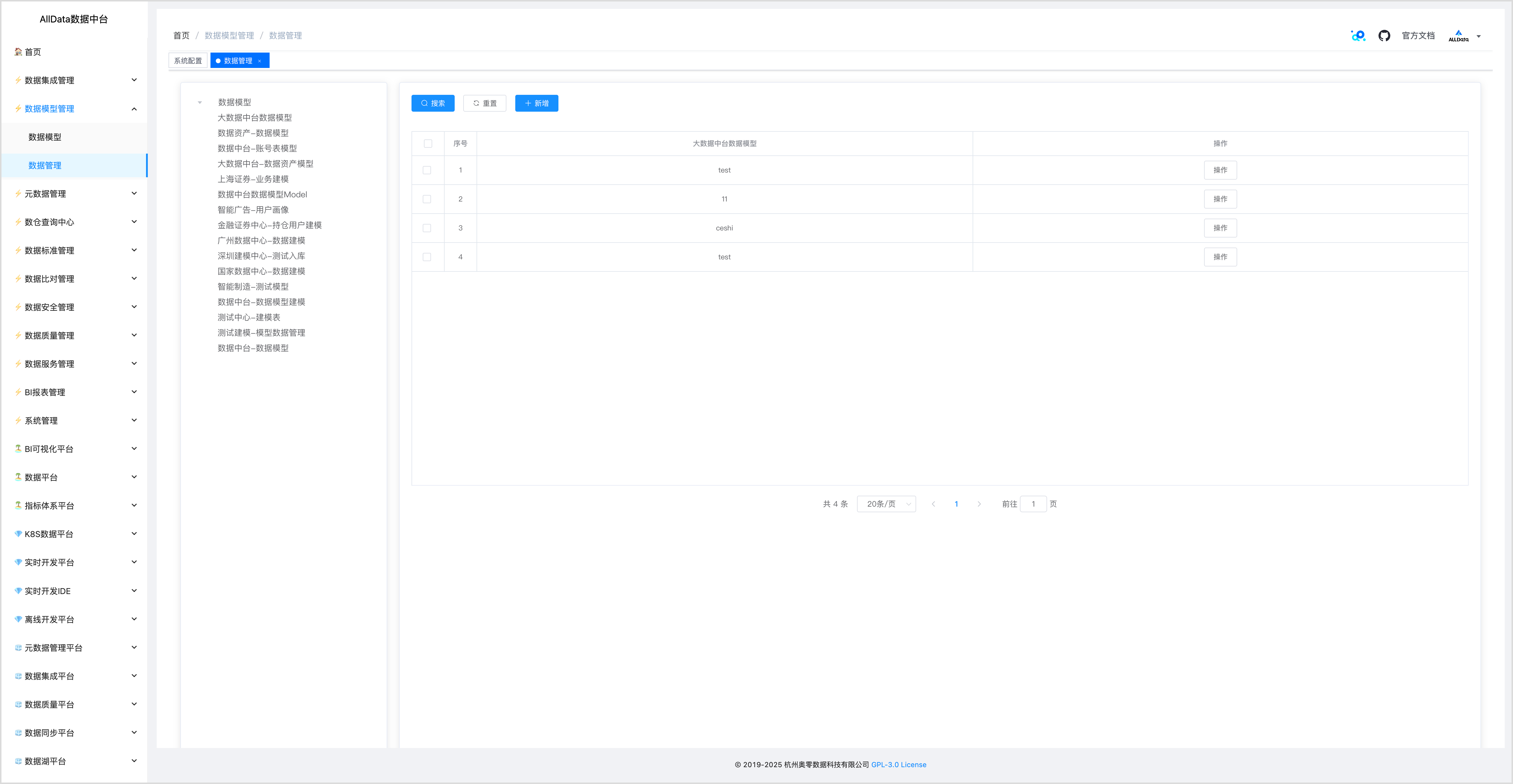 在AllData数据中台,用户可以方便地查询和管理数据模型。