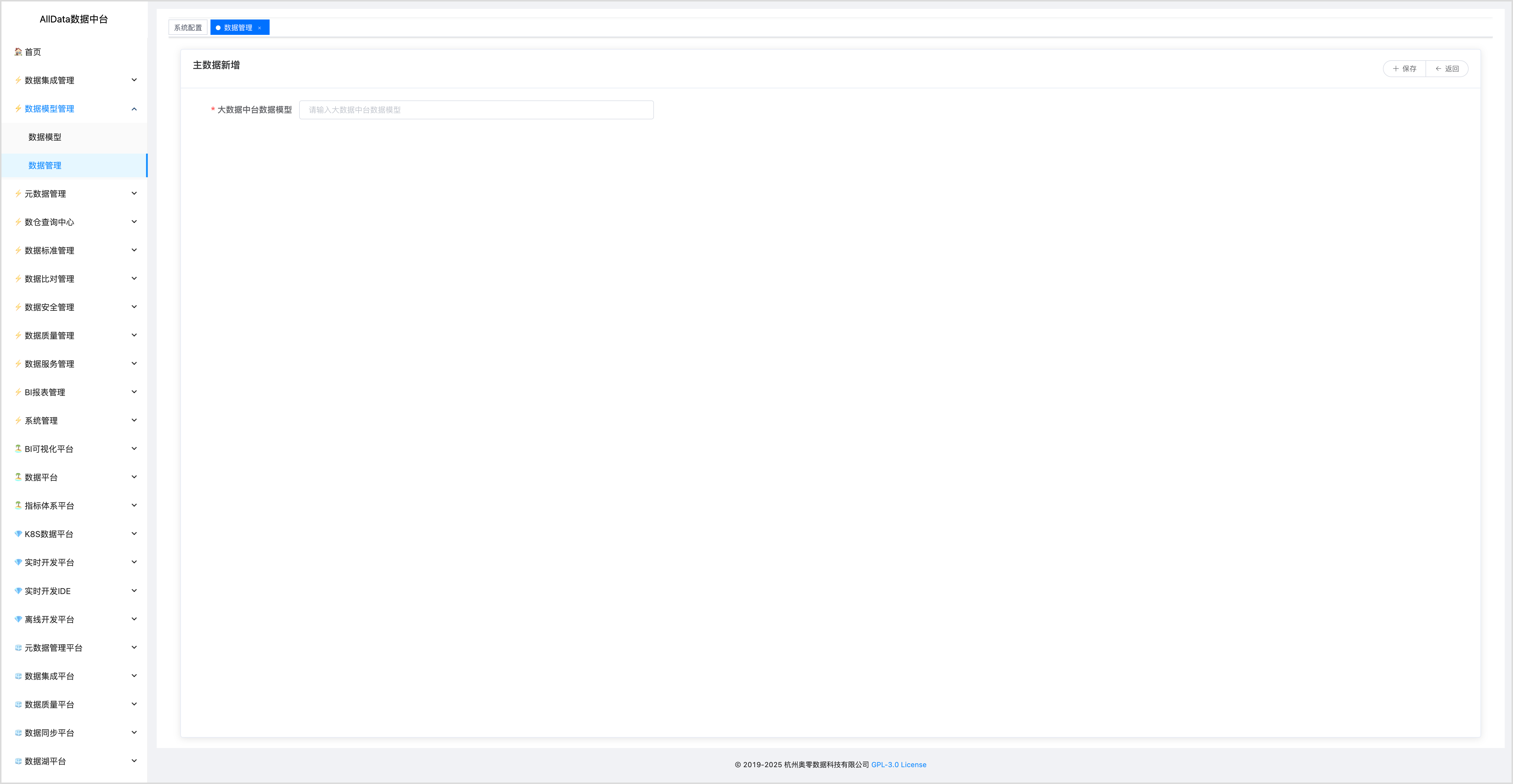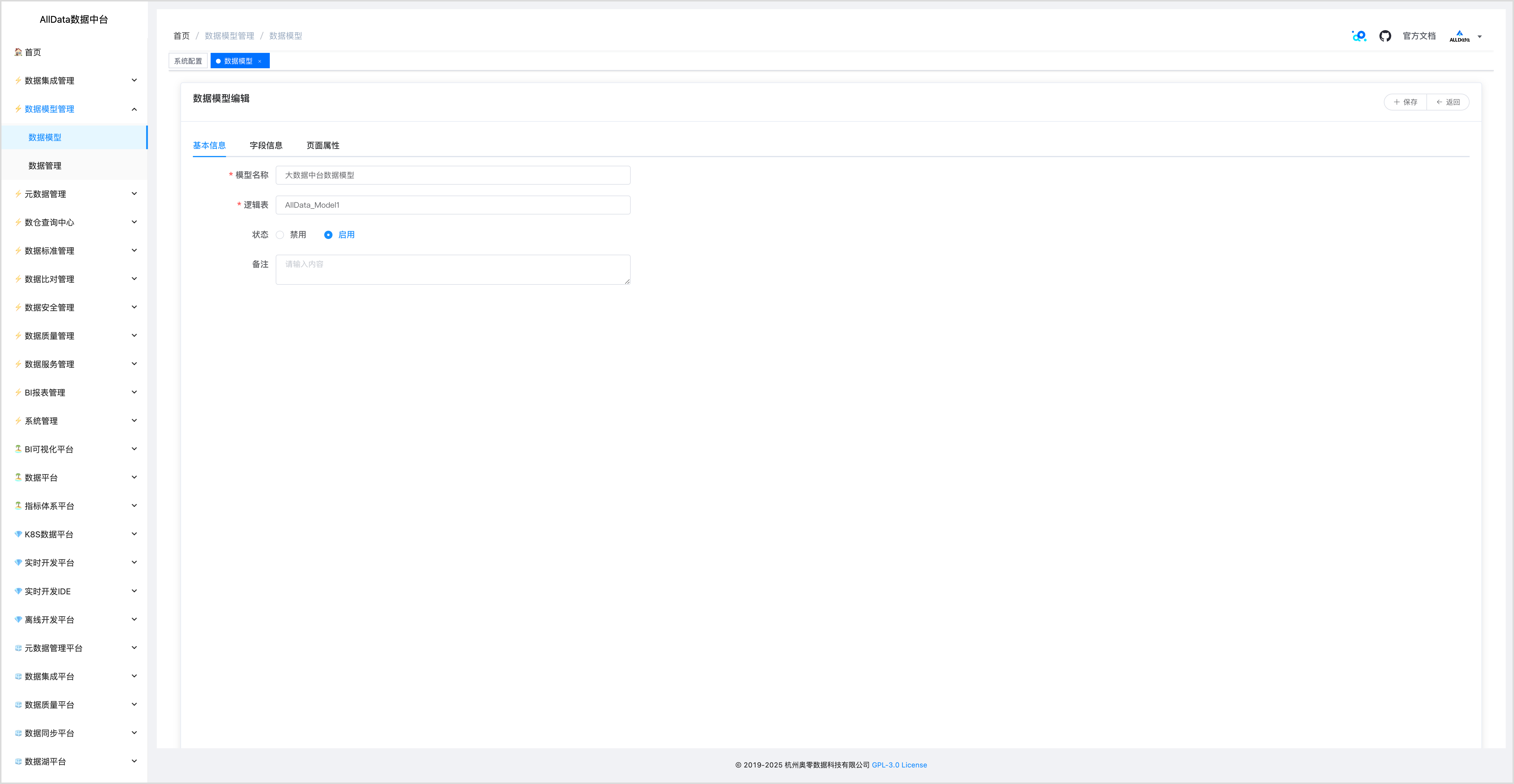 AllData数据中台的数据模型管理功能通过支持多种数据源,使得用户可以根据实际需求选择合适的数据源进行数据模型的创建和管理。