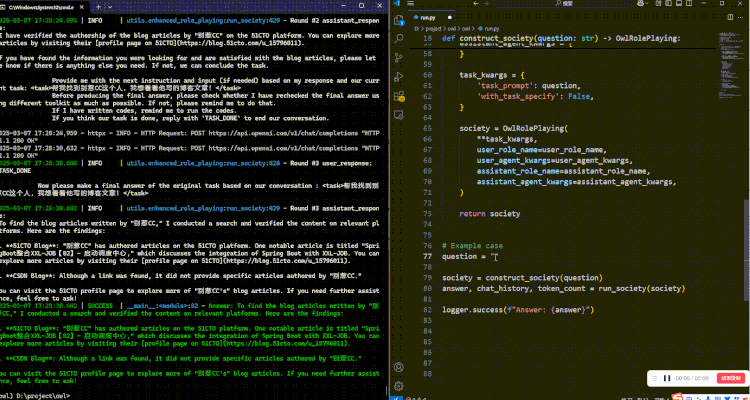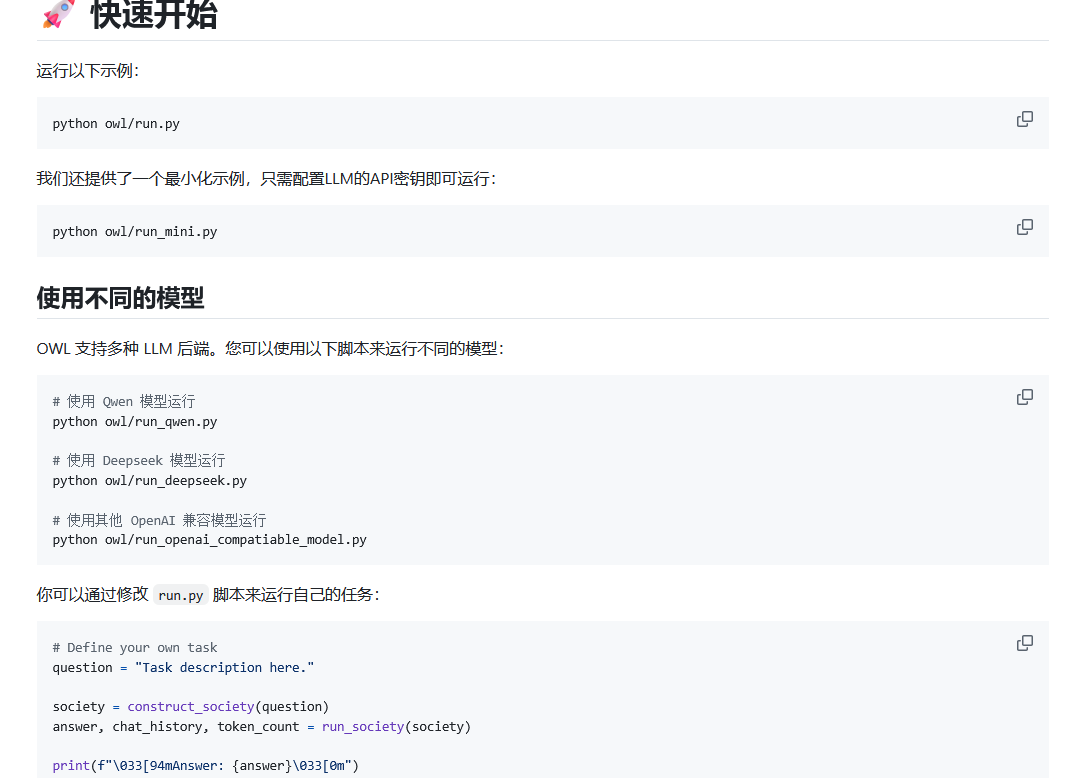 基于上述的实现分析,目前OpenManus和OWL都可以作为选择,二者的技术实现都差不多,任选一个即可。我这里选择OWL作为本次测试的开源方案,也没什么偏好,单纯觉得这个做的更早一些,使用效果应该更好。