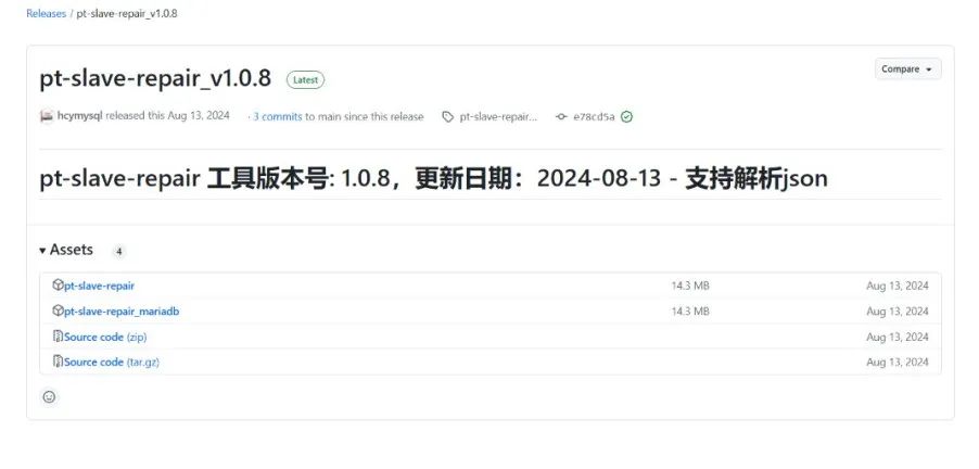wget https://github.com/hcymysql/pt-slave-repair/releases/download/pt-slave-repair_v1.0.8/pt-slave-repair