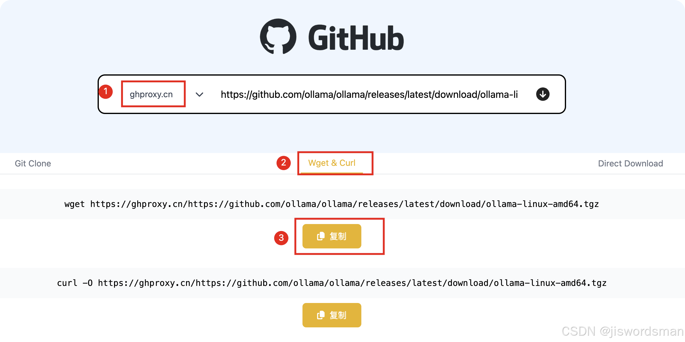 之所以下载非常慢,是因为国内访问ollama官网很慢,而安装文件又很大,导致脚本中下载安装文件的命令执行很慢,甚至超时。而解决办法其实很简单,就是把脚本中的安装包地址替换为国内访问比较快的地址。而这个国内访问比较快的地址就是Github加速器。