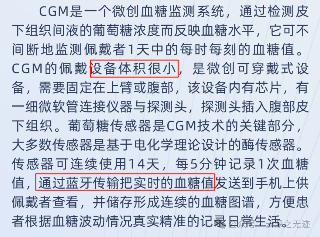 事实上也没有什么错,设计的时候就是做这个CGM的,这个也是一个新词,我们传统的血糖都是单点采样,只能说明一瞬间的时间。而CGM就是长时间的测量。