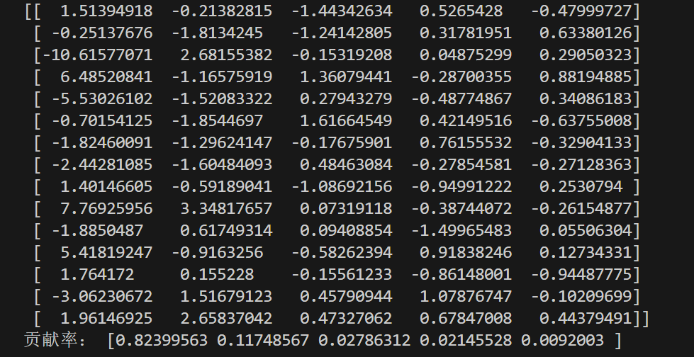 实际上我们的特征值λ除以所有的这个特征值的和就是这个属性对应的这个贡献率,但是原理不理解没关系(毕竟不是一时半会可以搞明白的),但是我们可以借助编程实现,因为python有这个现成的库供我们进行调用;