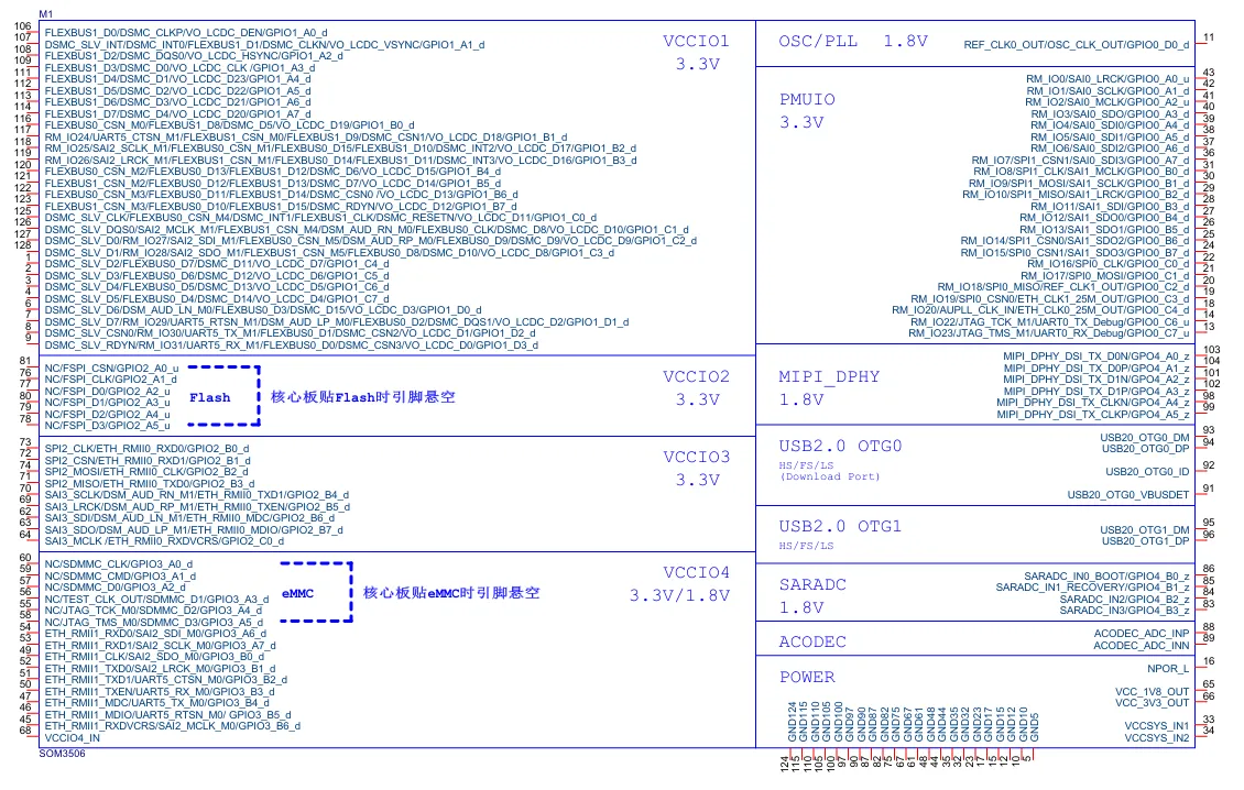116 | FLEXBUS0_CSN_M0/FLEXBUS1_D8/DSMC_D5/VO_LCDC_D19/GPIO1_B0_d | 1A3 | FLEXBUS0_CSN_M0 | 3.3v | |