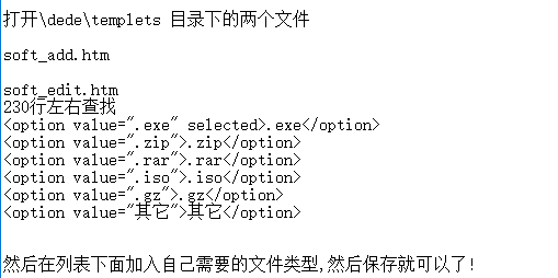 <option value="其它">其它</option>然后在列表下面加入自己需要的文件类型,然后保存就可以了!