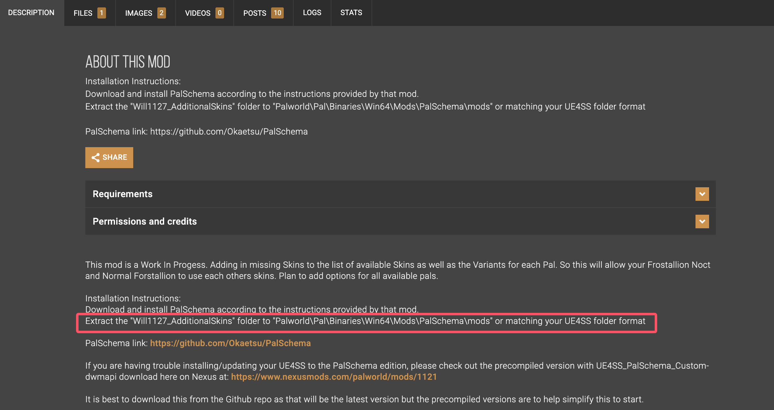 a) 以Nexus Mods某mod为例:https://www.nexusmods.com/palworld/mods/2199