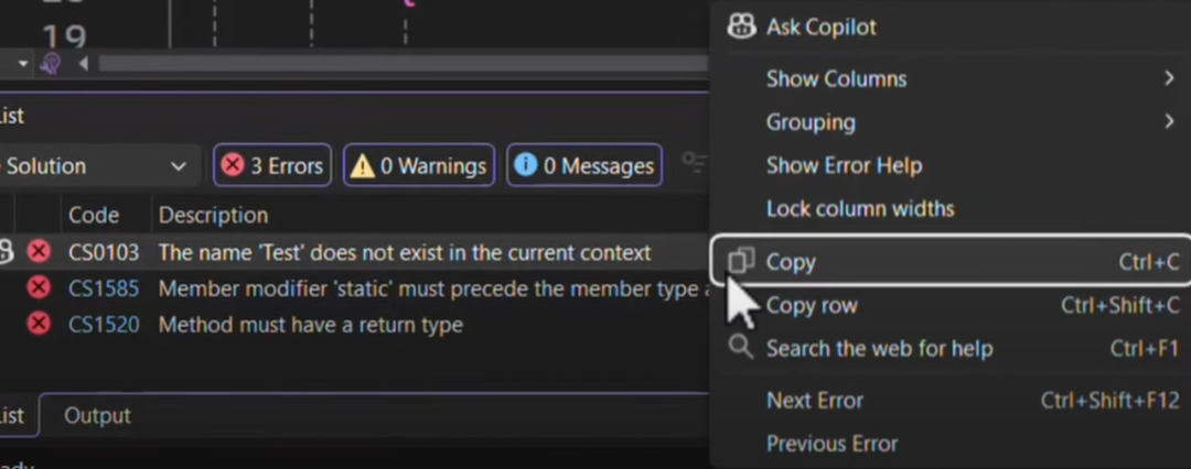 以前,复制错误信息可能包含您不需要的详细数据。有了这个更新,您可以只复制(Ctrl+C)错误描述,方便您在线搜索解决方案。