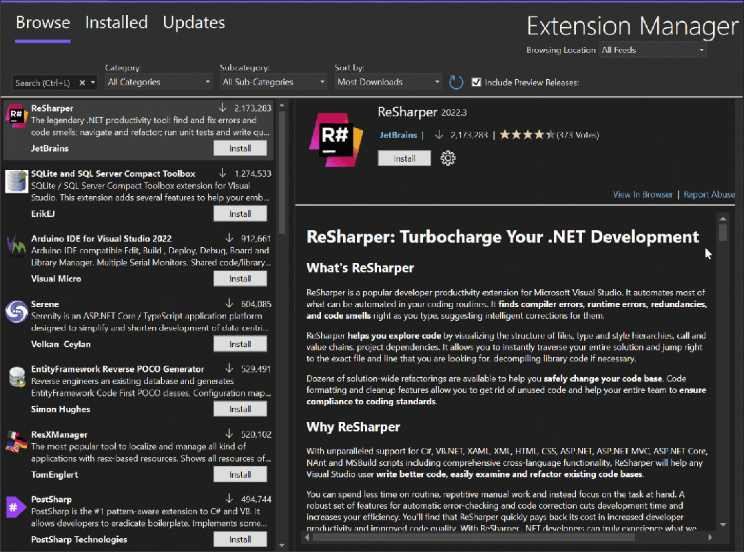 安装扩展不再中断您的工作。通过扩展热加载,您可以安装和使用扩展而无需重新启动 Visual Studio。