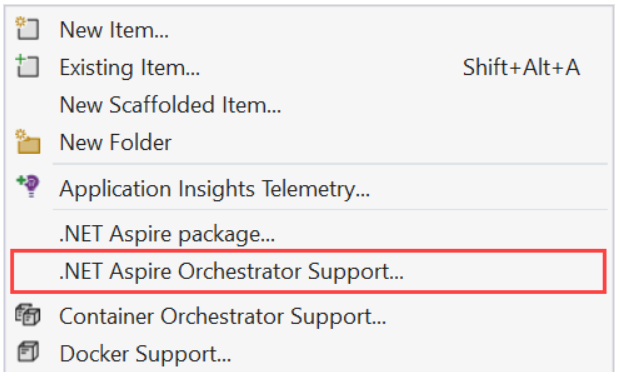 现在,只需单击一下,就可以轻松地编排现有的 .NET 应用程序和服务。Visual Studio 将自动创建 .NET Aspire 的“AppHost”和“ServiceDefault”项目,并为您配置一切!在 Visual Studio 的相同的上下文菜单中,您可以很容易地添加 .NET Aspire 集成到您的项目中,只需打开一个经过过滤的 NuGet 搜索。看看吧!