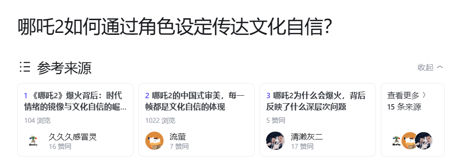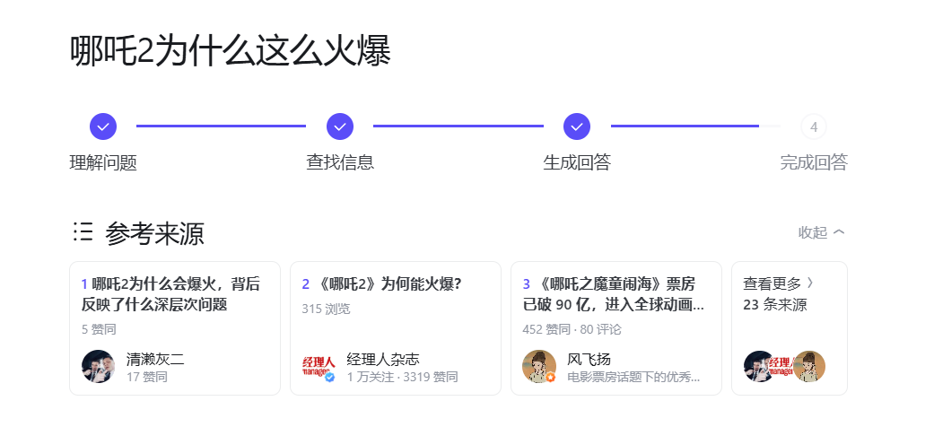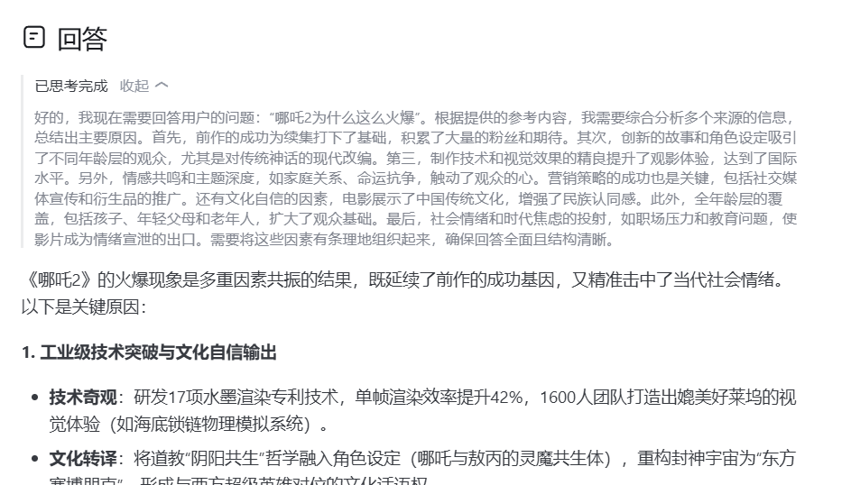 比如我搜索一个问题“哪吒2为什么这么火爆?”