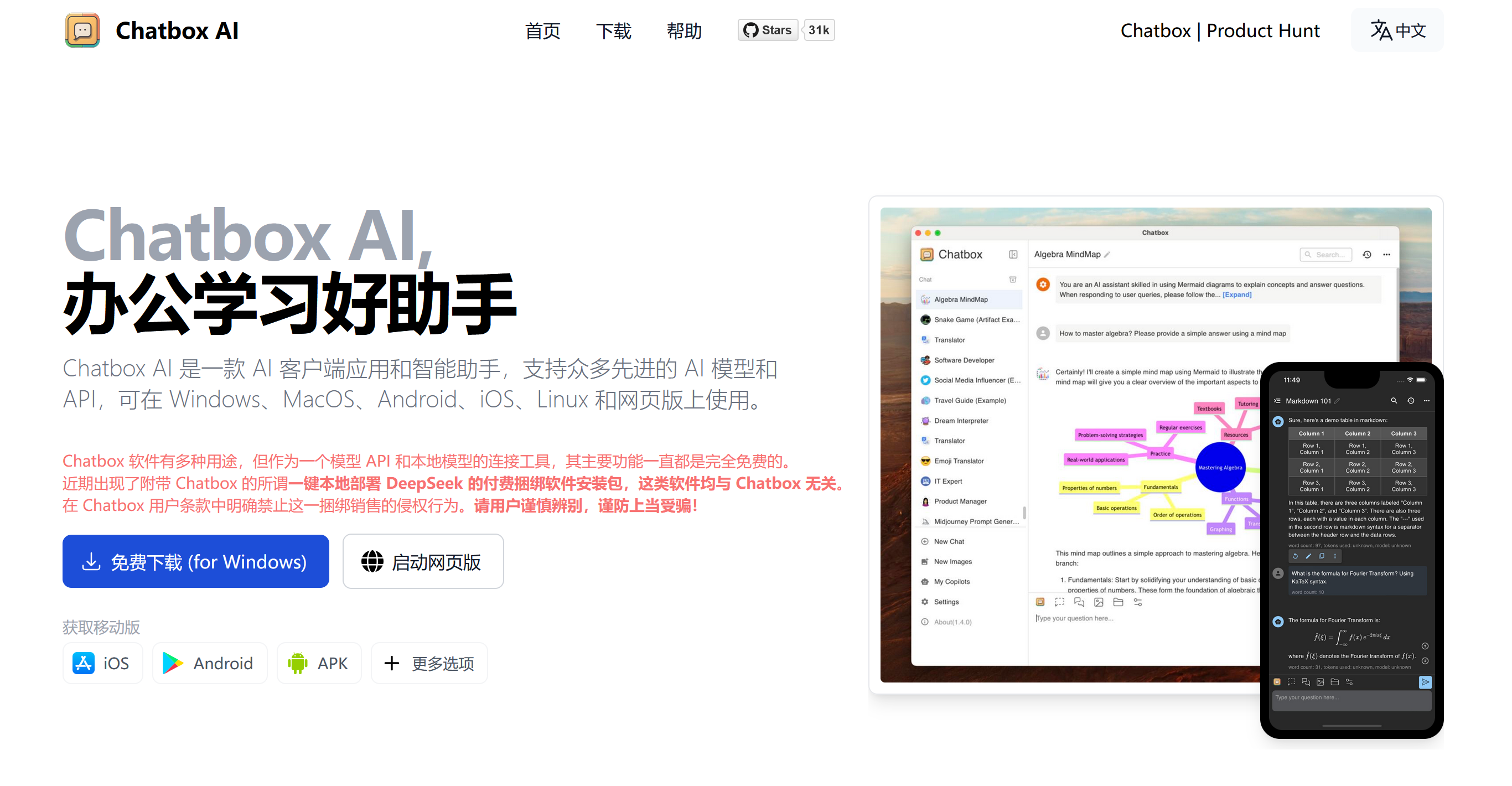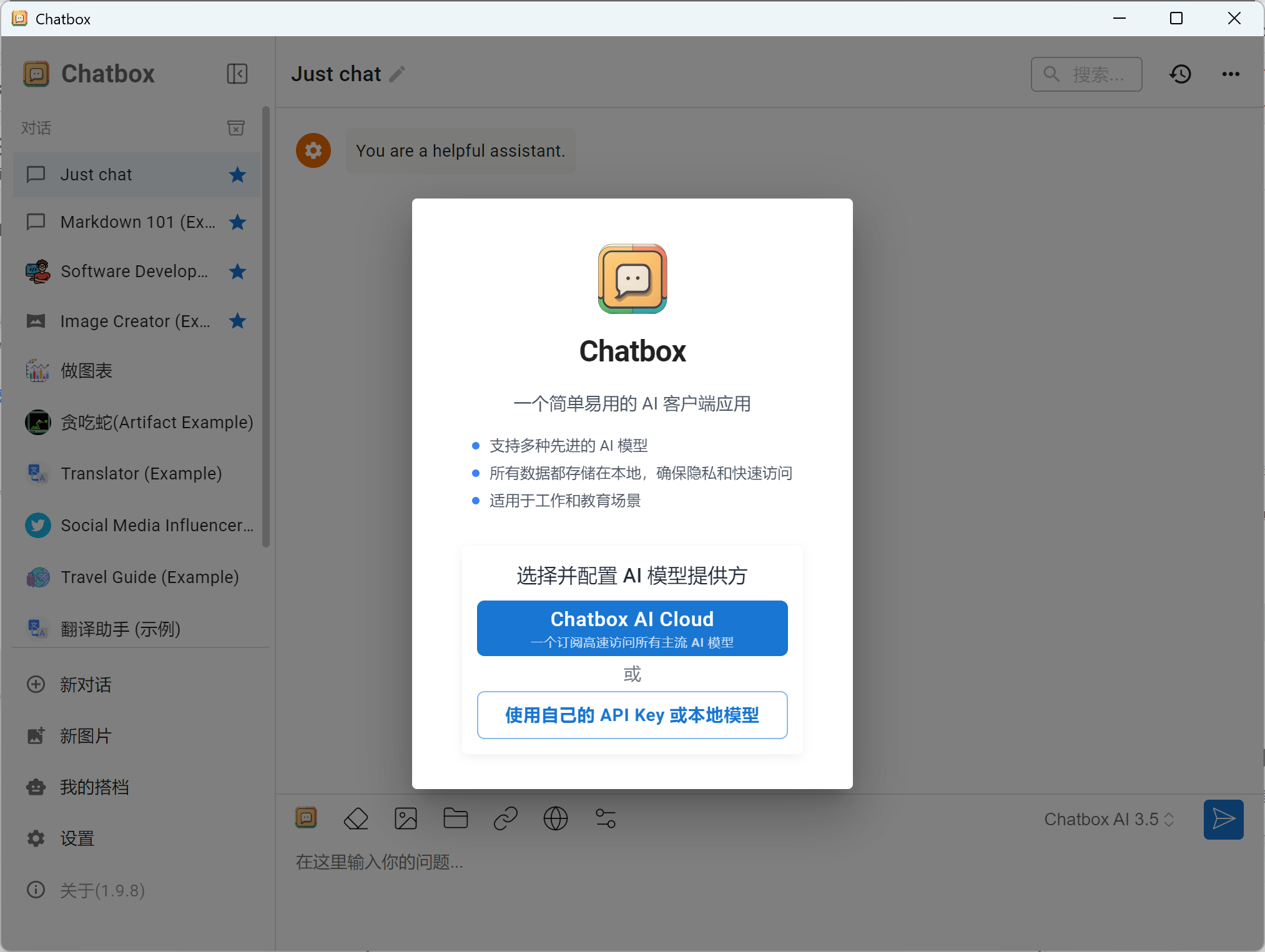 安装地址:Chatbox AI官网:办公学习的AI好助手,全平台AI客户端,官方免费下载