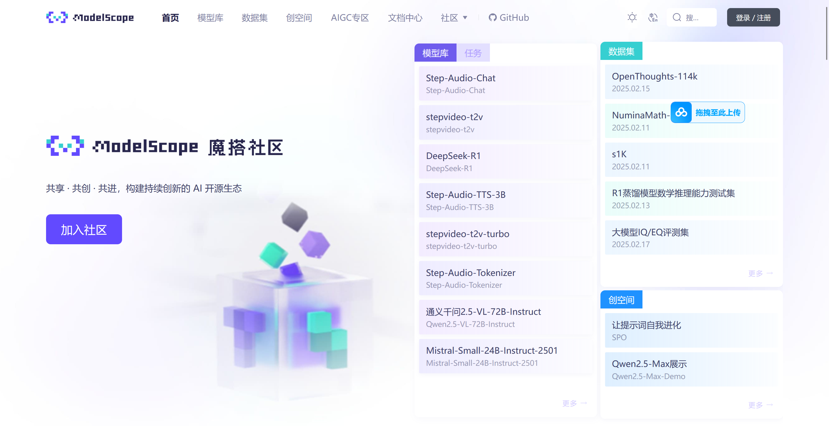 大模型下载最常用的两个平台是huggingface和modelscope(魔塔社区),本文选用魔塔社区下载。 魔塔社区提供了很多开源模型,魔塔社区地址如下: https://www.modelscope.cn/home